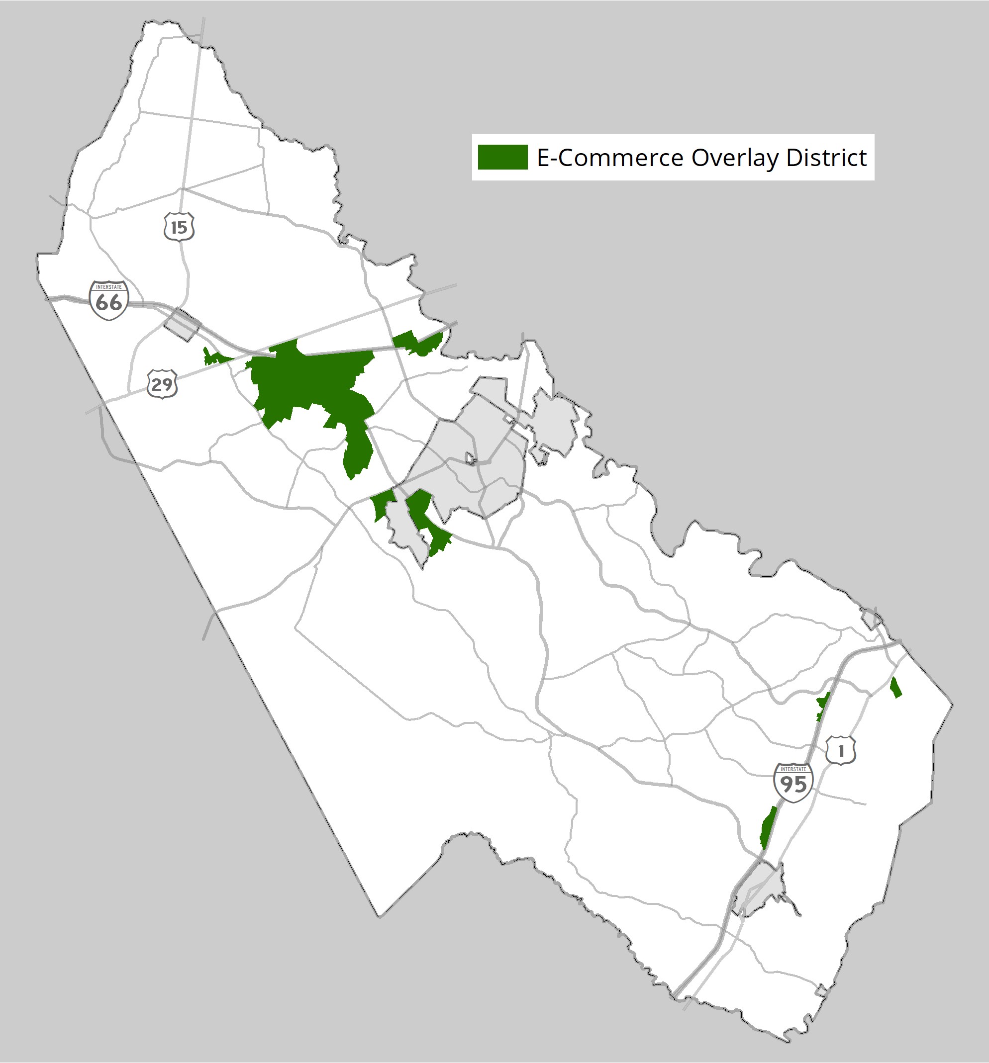 Description: The layer represents the E-Commerce Zoning Overlay District as adopted by the Board of County Supervisors Ordinance 21-55 on October 5, 2021. The addition to the Zoning Ordinance of the adopted overlay district is shown on this layer. The amendment to the ordinance "creates new definitions related to distribution and fulfillments uses, esablish[es] design standards, and create[s] a new overlay district to promote areas of the County that can best handle the impacts related to these new uses."Part 511 - E-Commerce Overlay District